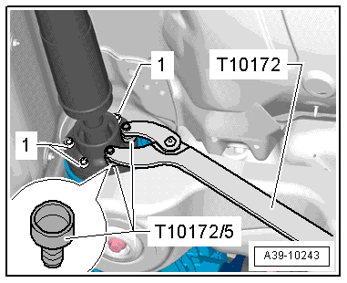 Fig 6: Counter Hold Rear Driveshaft Using Counterhold Tool T10172 And Adapters T10172/5