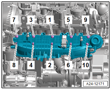 -- Tighten the bolts -1 to 10- to 8 Nm in the sequence shown.