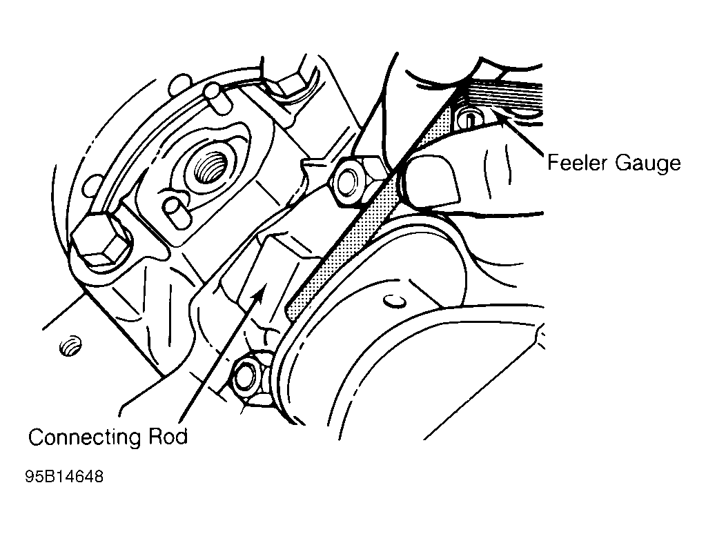 Position connecting rod toward one side of crankshaft as far as possible. Using feeler gauge, measure clearance between side of connecting rod and crankshaft. See Fig 1. Clearance must be within specification.