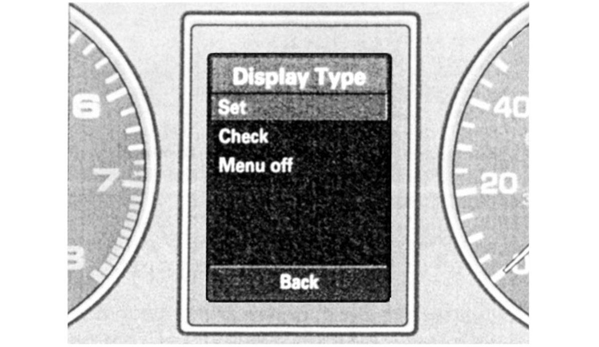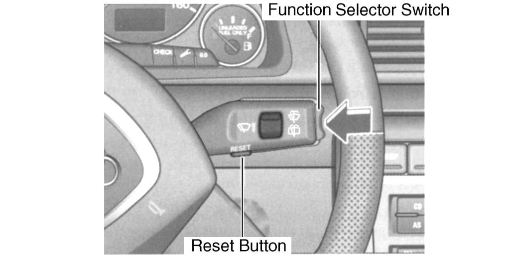 - On the windshield wiper lever, push the RESET button (Fig 1) until the menu shown in in the illustration is displayed. See Fig 2.