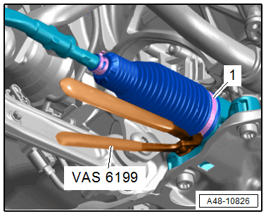 -- Secure the spring clip -3- on the boot -2- with the :VAS6362 , and pay attention to the installation position at the same time. Refer to Figure.