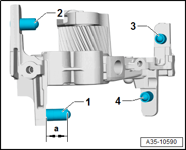 - Layout of the oil filler hole -arrows- at an offset of approximately 90°.