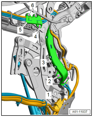 -- Remove the bolt -5- and free up the cable holders -1-.