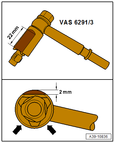 Depending on the version, the spacer tube from the Charging Device For AWD Clutch Coupling 2 - Adapter 3VAS 6291/3 can line up on the housing rib on the final drive.